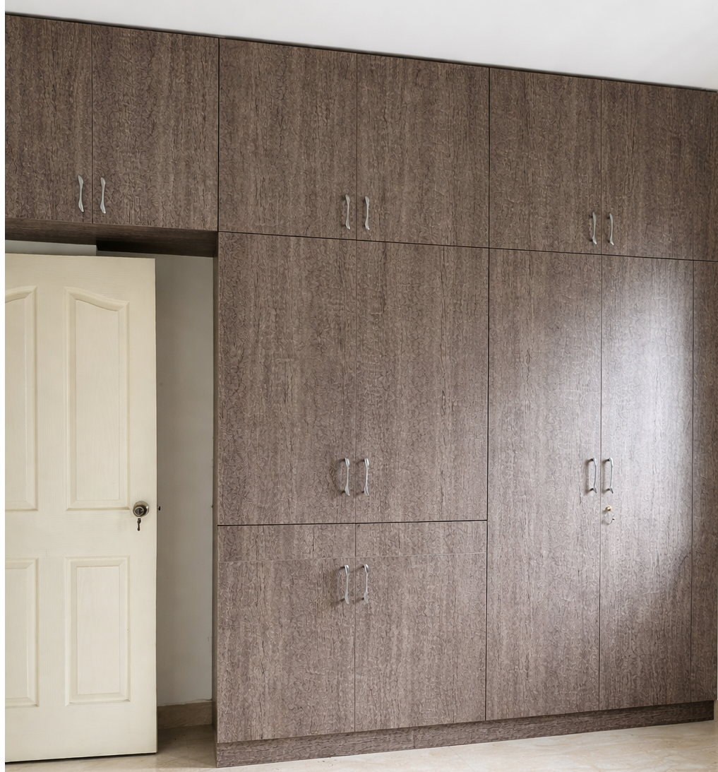 A stylish full-wall wardrobe designed to maximize storage while maintaining a sleek and modern appearance. Its floor-to-ceiling layout makes efficient use of space, offering multiple compartments to keep clothing and essentials neatly organized. The smooth finish and clean lines add a contemporary touch, blending effortlessly with modern interiors. Ideal for everyday living, this wardrobe combines practicality with a refined, clutter-free look.