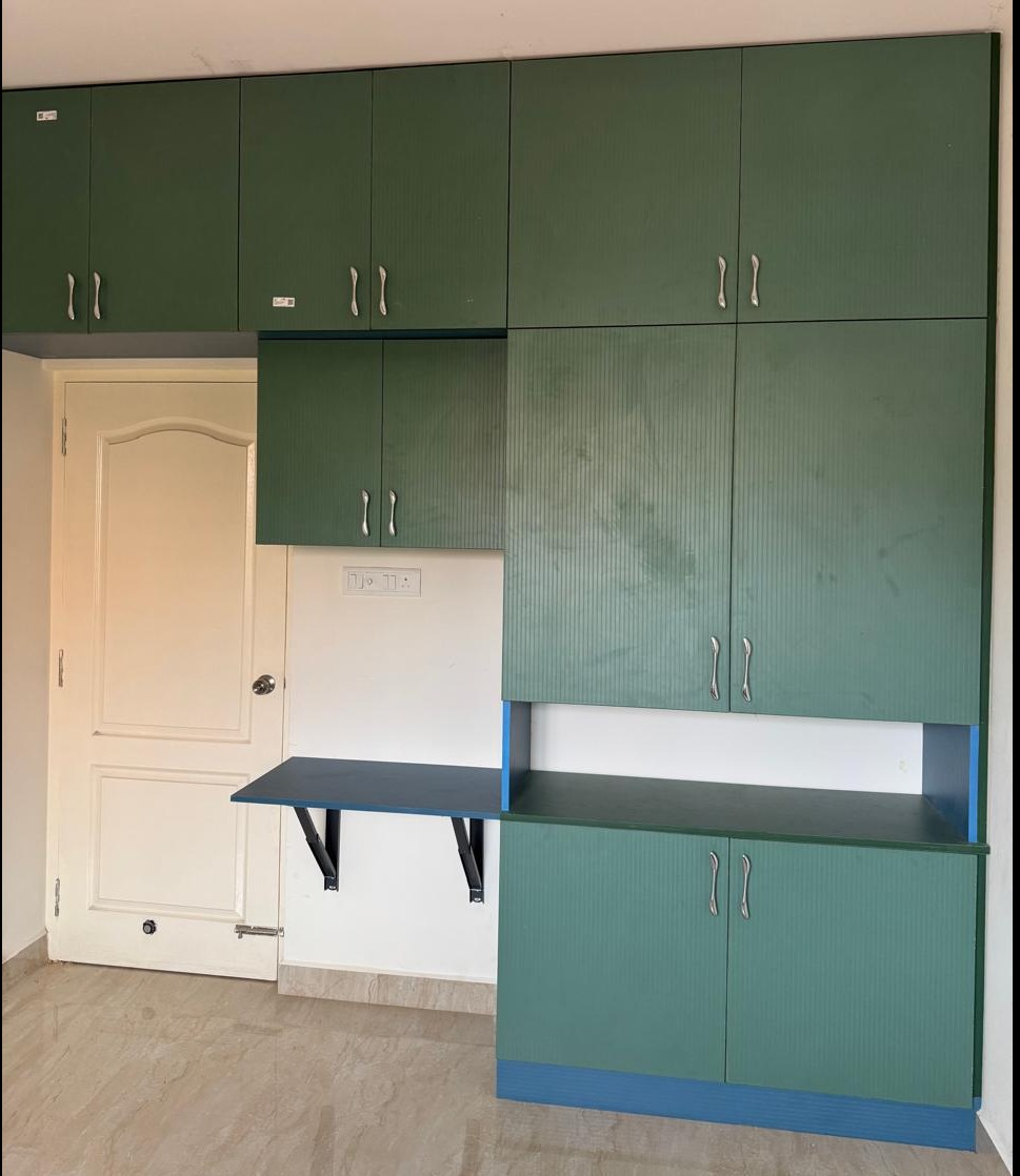 A practical and space-saving wall unit designed for everyday use. It features multiple cabinets for organized storage and a foldable desk that can be used for work or study. The desk can be easily folded away when not in use, keeping the area neat and clutter-free. Perfect for modern homes, this unit makes smart use of space while maintaining a clean and simple look.